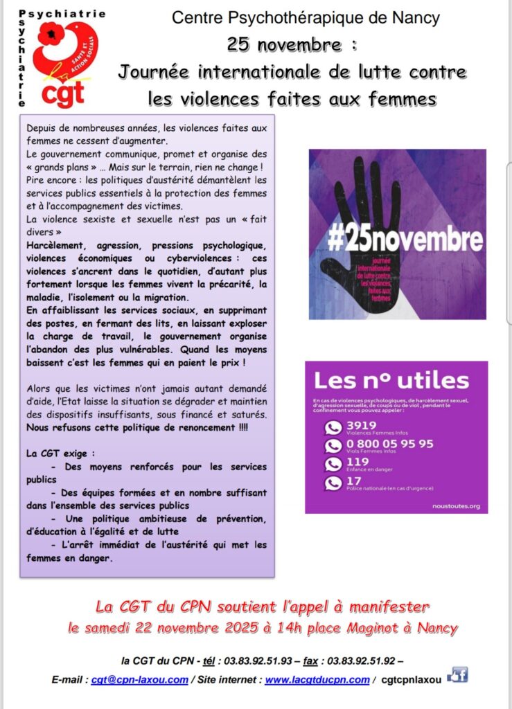 Infos de la CGTInformations localesInfos nationales 22 et 25 novembre contre les violences faites aux femmes Par CGT du CPN - 20 novembre 2025 5 FacebookTwitterWhatsAppLinkedinEmailImprimerCopy URL