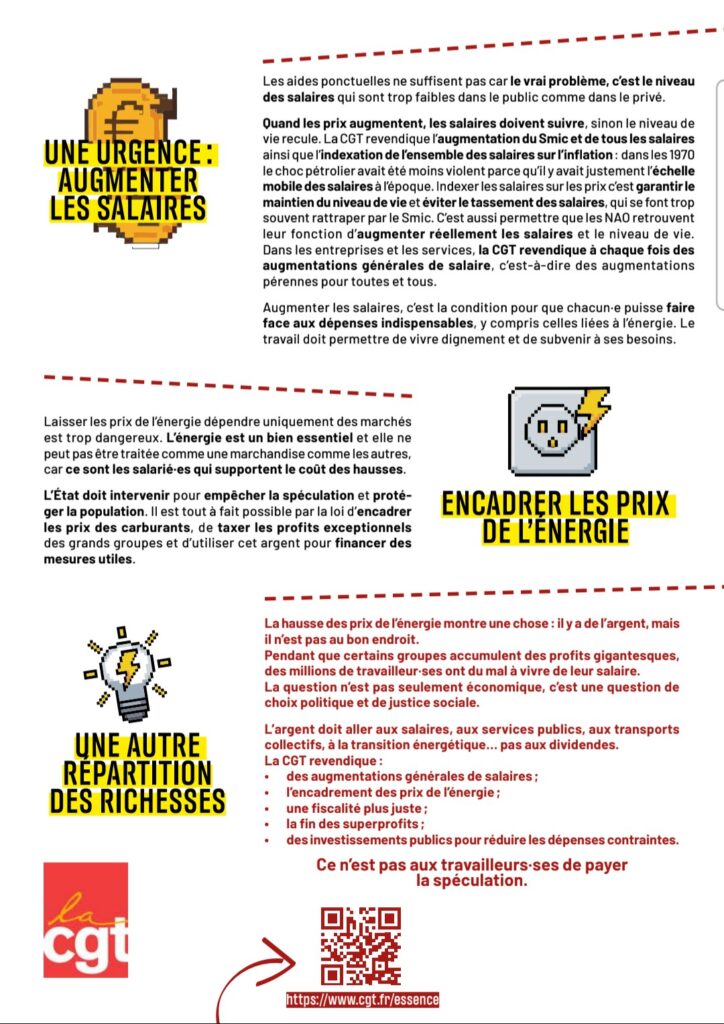 Devant la hausse des carburants et l’inflation qui s’amorce, la CGT en appelle à des mesures urgentes en faveur du blocage des prix des énergies et de l’augmentation des salaires !