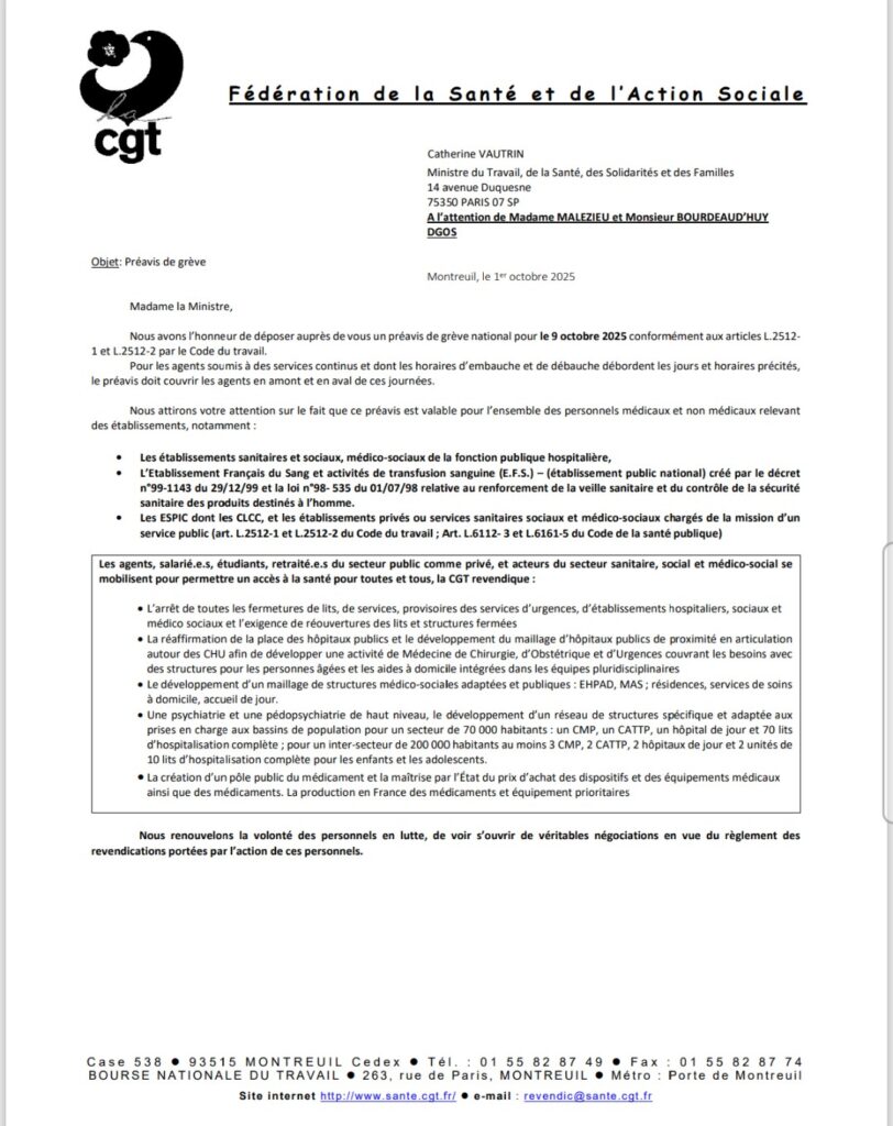 Jeudi 9 octobre 2025, des camarades de la CGT du CPN feront partie de la délégation de la CGT Santé et Action Sociale 54 qui se rendra à PARIS.